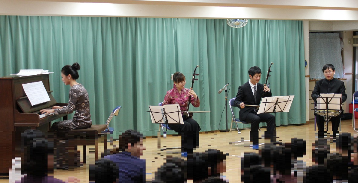 2013年11月1日午後、東京都港区立南麻布保育園でミニコンサートを出演しました。お子様たちの好きそうな曲を演奏後、笑顔、元気な歌声、手作りお花を頂きました。南麻布保育園の皆様、ご協力をありがとうございました。出演者:田宇(二胡)、李英姿(二胡)、付陽(スネアドラム)、沈佳女(ピアノ)。※写真の一部はモザイクで処理しました。